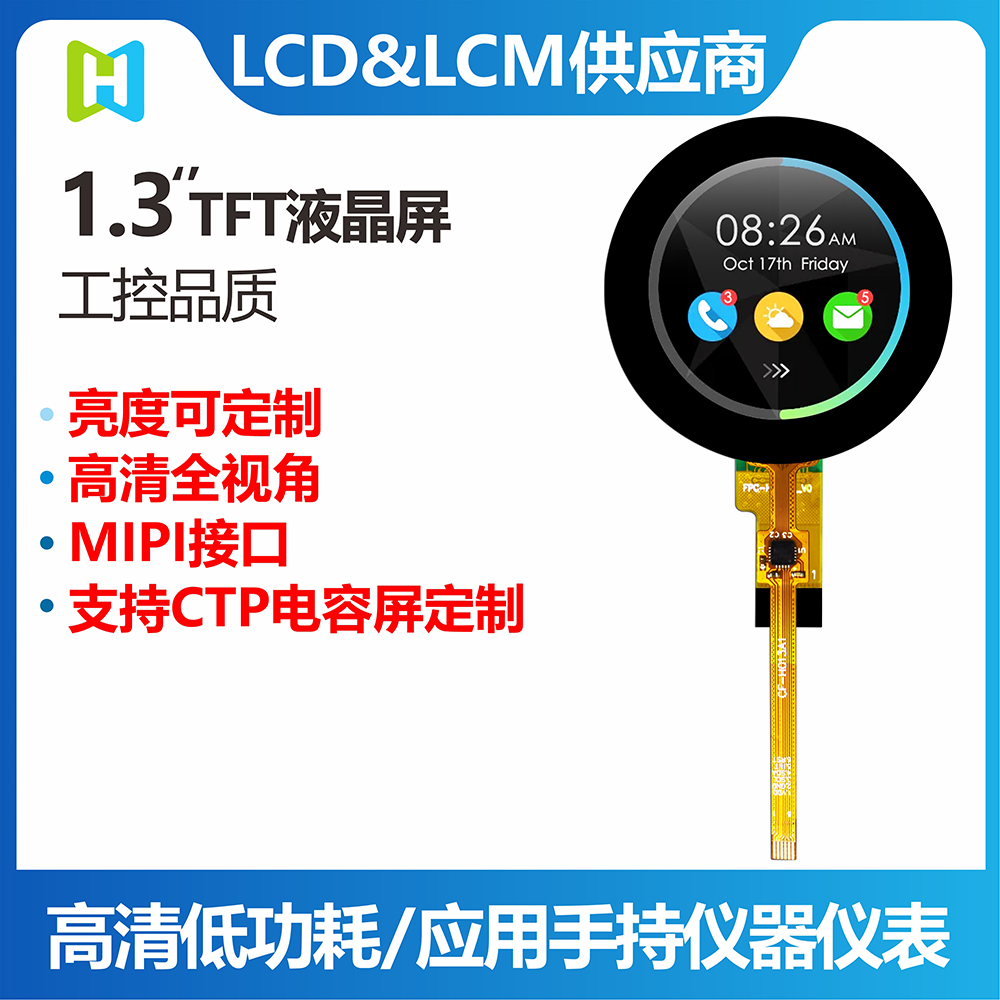 ) is a 1.3inch TFT color LCD module with 320*320 resolution, which is carefully designed by HOTDISPLAY,65K / 262K true color, builtin st7796 controller, support MIPI serial interface. 16pinfpc connection (optional connector), 3.2Vvoltage。 All materials meet the ROHS standard of environmental protection requirements. This module can be equipped with touch screen, which is widely used in various instruments, intelligent equipment, analytical instruments, hand-held instruments, driving recorder, etc. it is suitable for a variety of single-chip development platforms, such as 8051, PIC, AVR, Arduino, arm and Raspberry PI.
