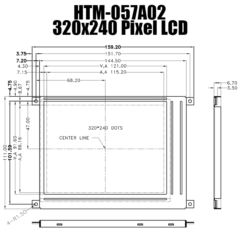 • Model : 5.7 Inch Lcd Display 320x240 Resolution Sunlight Readable Monitor Monochrome Display TFT-HTT057A02