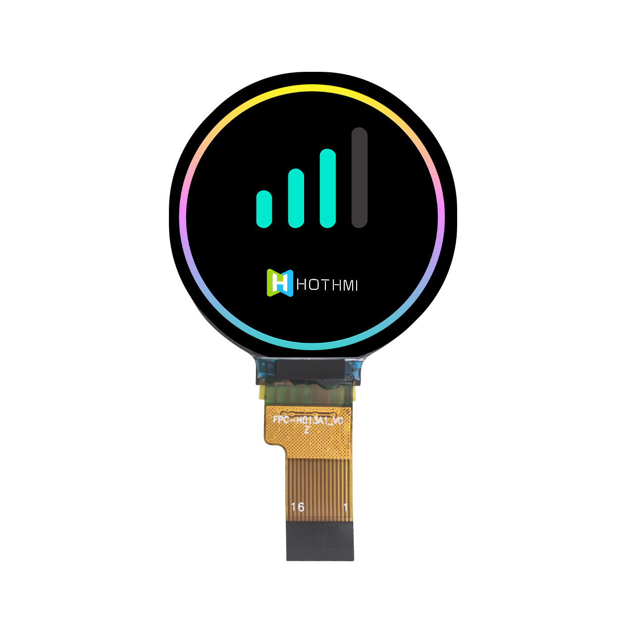 The TFT-H013A6QQIGC7N10-V1 Is A Circular IPS TFT-LCD Screen With A Display Diameter Of 1.28 Inches And A Resolution Of 240x240 Pixels. This Circular TFT Display Consists Of An IPS TFT-LCD Panel With A Built-In GC9A01 Driver IC That Communicates Via An SPI Interface.