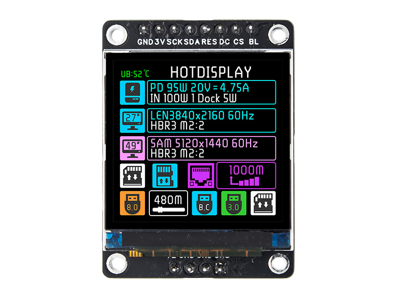 32x43.72x1.95 | 1.5 | 1.5 | 27.72x27.72 | IPS | 700cd/m2 | SPI | Anti-static ESD 8KV | -20~70℃ | +3.3V | ST7789 | ||
