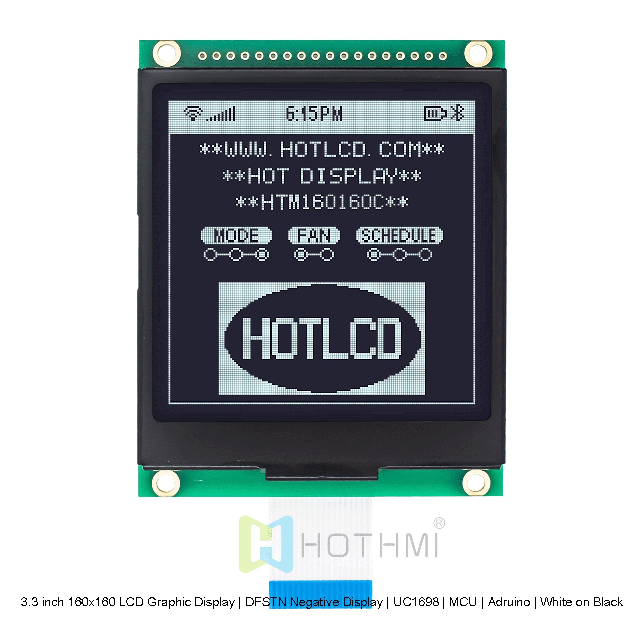 3.3 英寸 160x160 LCD 圖形顯示屏在黑色背景上顯示白色像素。這款全透式 LCD 顯示屏經(jīng)過(guò)精心設(shè)計(jì),在明亮環(huán)境中,通過(guò)偏光片的反射性,將圖像反射給觀賞者,在較暗的環(huán)境中,LCD 內(nèi)置強(qiáng)背光,可提供高對(duì)比度并向觀看者顯示清晰的圖形。這種先進(jìn)的顯示技術(shù)可確保顯示屏始終易于閱讀,無(wú)論照明條件如何。