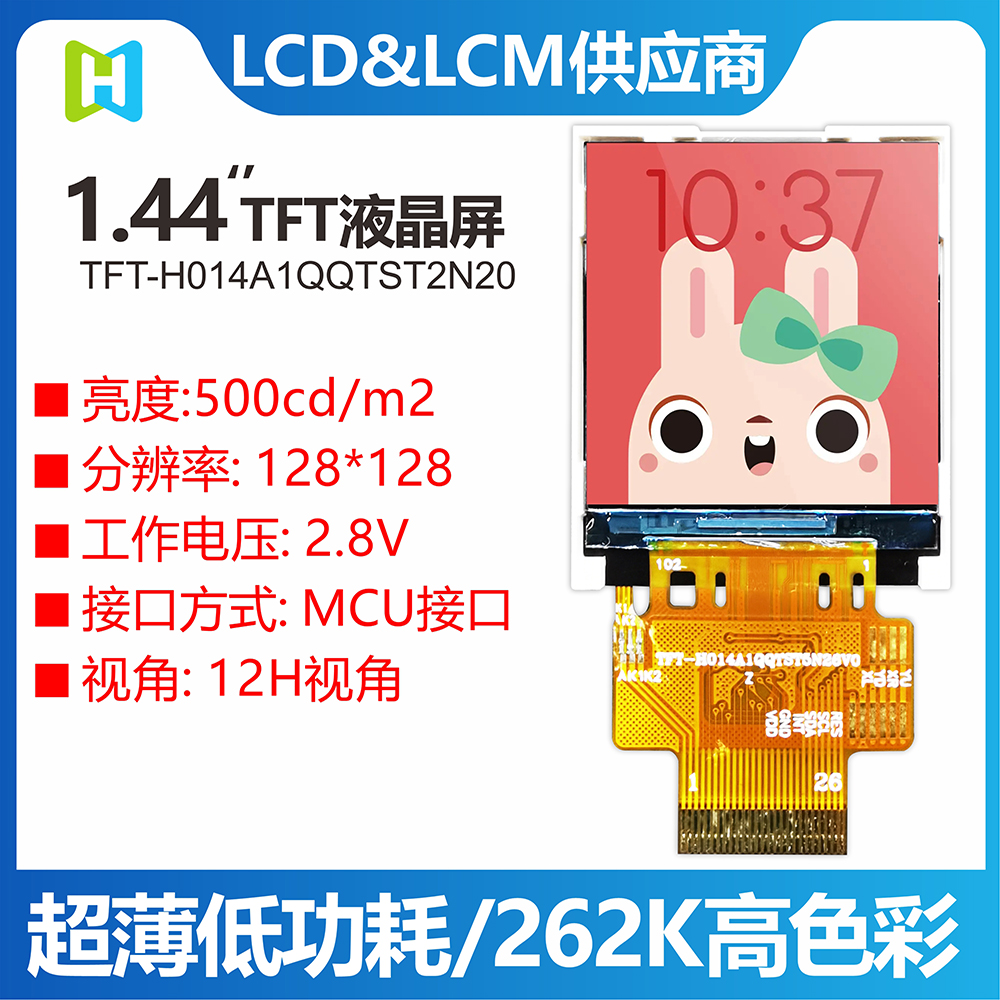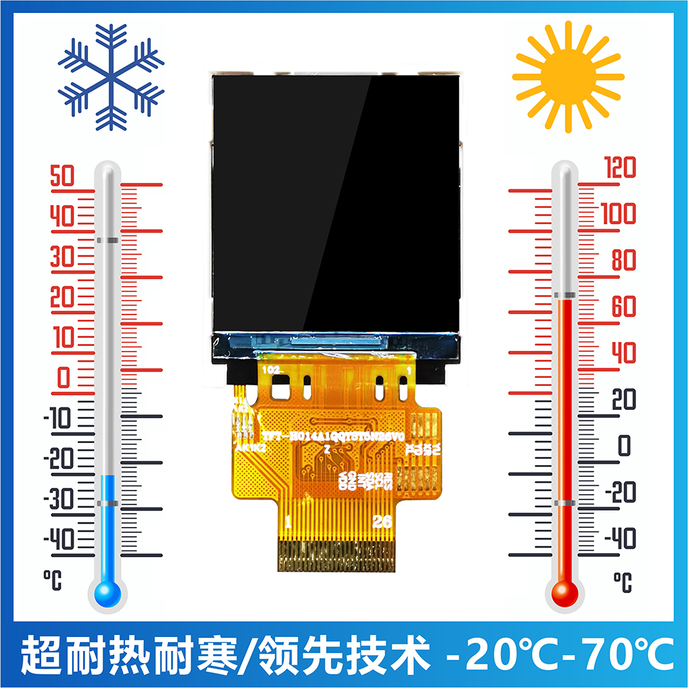 產(chǎn)品描述 TFT-H014A1QQTST5N26 是一款 1.44 英寸全彩 TFT LCD 顯示模塊,分辨率為 128x128 像素,縱橫比為 1:1。 該TFT模塊采用ST7735S驅(qū)動(dòng)IC,支持MCU接口。 采用IPS面板的TFT模組具有廣視角優(yōu)勢(左80度/右80度/上80度/下80度),對比度典型值800:1,該模組亮度高達(dá)500尼特( 典型值)。 模塊工作溫度范圍-20℃~+70℃,儲存溫度范圍-30℃~+80℃