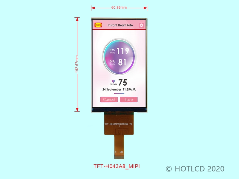 4.3寸TFT豎屏|480*800分辨率|IPS全視角|MIPI接口|TFT-H043A8WVIST5N20