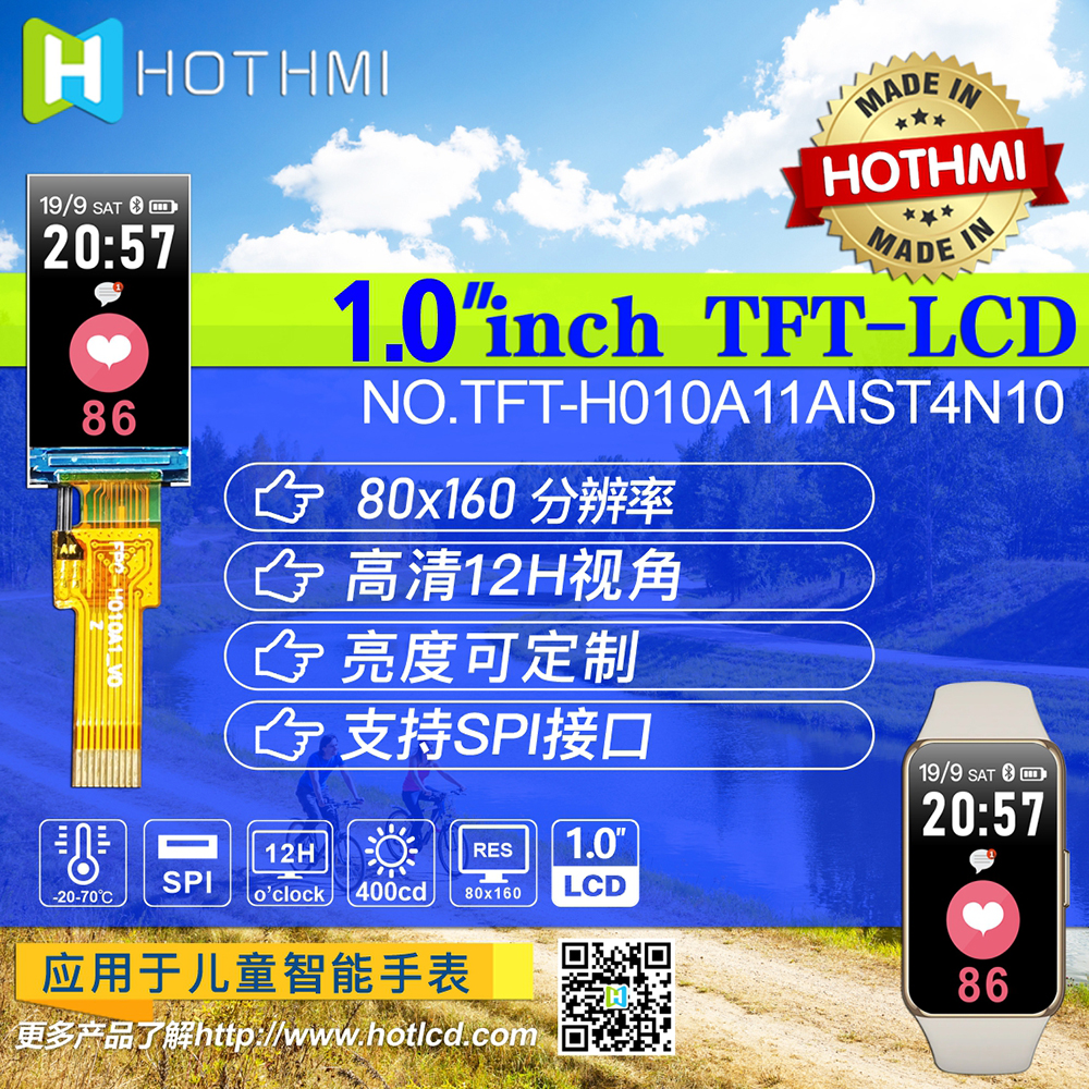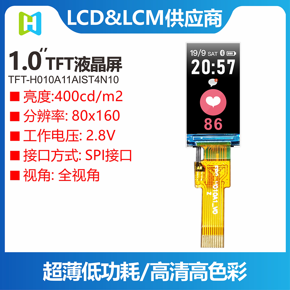 產(chǎn)品描述 TFT-H010A11AIST4N10是一款1.0英寸全彩TFT液晶顯示模組,分辨率為80x160像素,寬高比為1:2。 TFT模塊采用ST7735S驅(qū)動(dòng)IC,支持SPI接口。 采用IPS面板的TFT模組具有廣視角優(yōu)勢(shì)(左80度/右80度/上80度/下80度),典型對(duì)比度為800:1,模組亮度高達(dá)400尼特( 典型值)。 模塊工作溫度范圍-20℃~+70℃,儲(chǔ)存溫度范圍-30℃~+80℃。