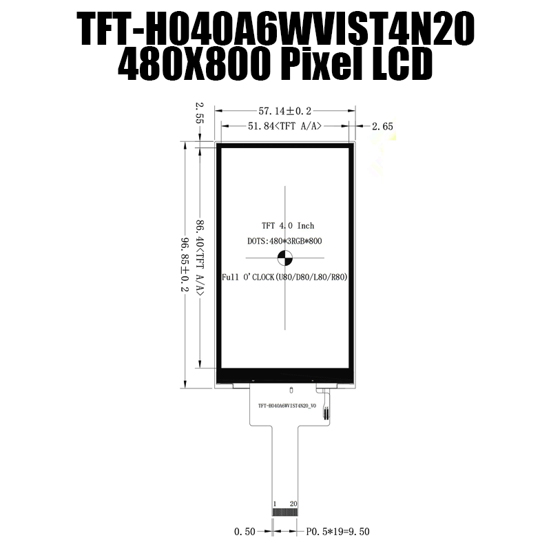 TFT-H040A6WVISTKN20 | 4.0" IPS LCD | 480x800px 屏幕 | 無(wú)觸摸屏 | TFT-H040A6WVISTKN20
