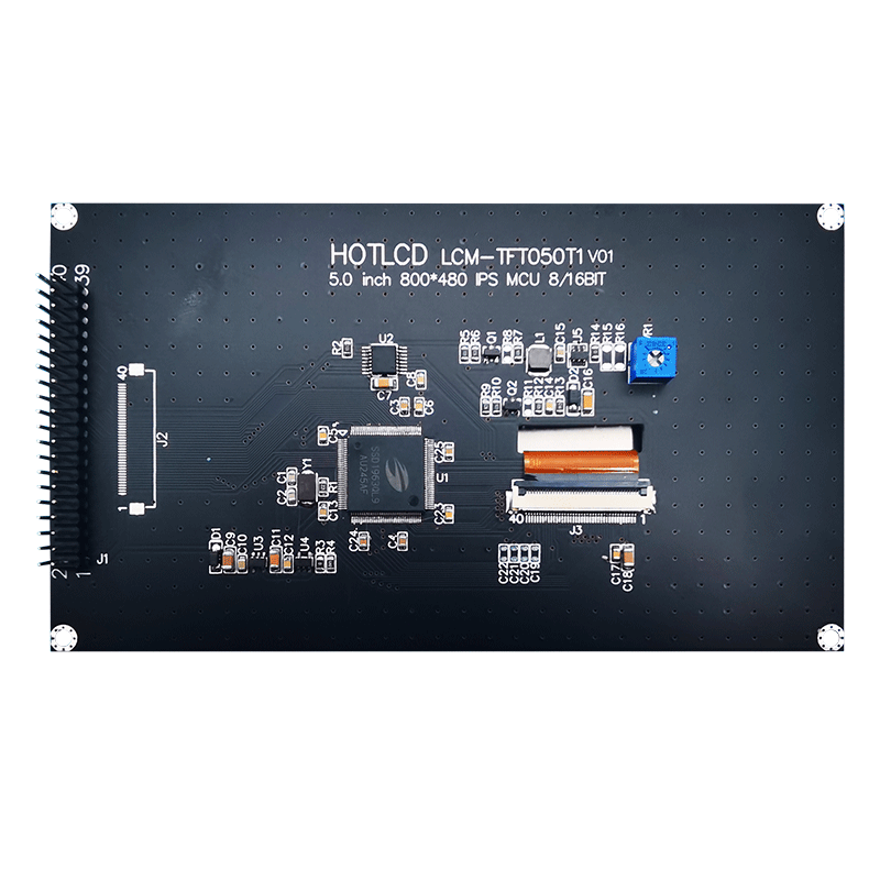 因此,鑫洪泰HOTLCD研發(fā)團(tuán)隊(duì)設(shè)計(jì)一款方便客戶使用的MCU8/16位接口的5.0寸高清TFT顯示模塊 LCM-TFT050T1,具有高清800x480分辨率,高畫質(zhì),全視角,65K/262K真彩色,內(nèi)置SSD1963控制器,無(wú)需外圍電路即可連接主板(可選配連接器),單電源DC3.3V供電。此款TFT模塊可選配觸摸屏并內(nèi)置XPT2046電阻觸摸屏驅(qū)動(dòng)器。