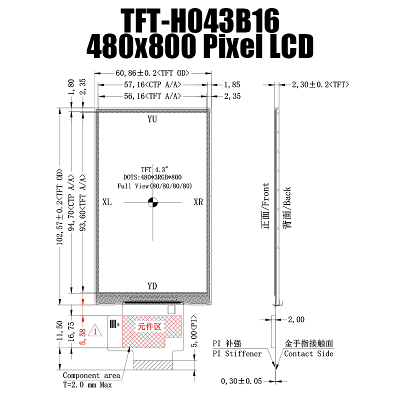 TFT-H043B16WVINT4N40 的亮度為 400cd/m2,即使在明亮的陽光下也能呈現(xiàn)明亮生動(dòng)的圖像。 IC NT35510 提供可靠和高效的性能,而 MCU8080 接口使其易于集成到您的項(xiàng)目中。