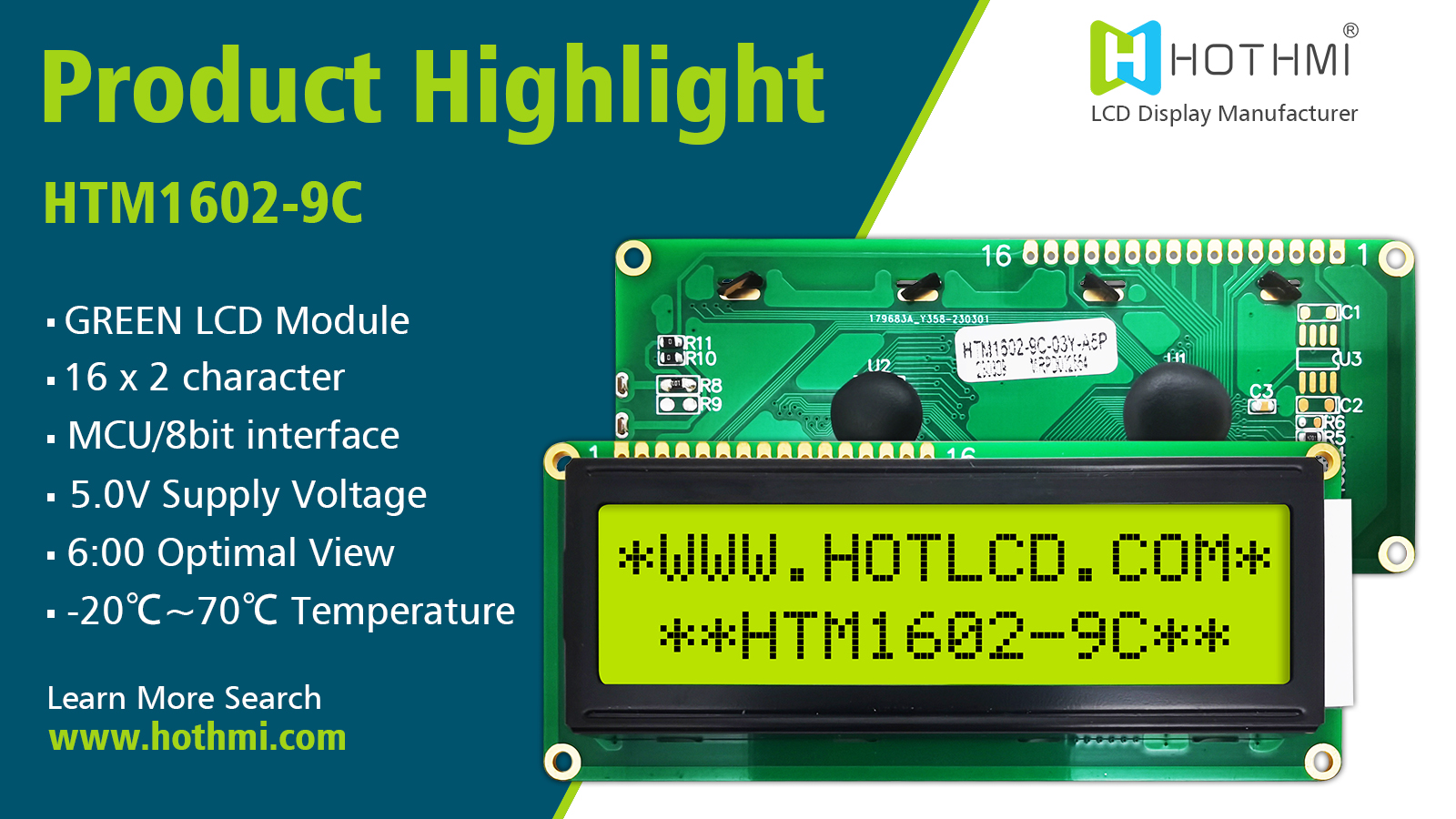 HTM1602-9C LCD 顯示模塊 16 字符 x 2 行 LED 背光提供各種背光顏色組合,如黃綠色、藍(lán)色、白色、琥珀色、紅色。 這種不帶背光的 LCD 模塊也可提供。 如果您想了解相關(guān)的 16 字符 x 2 行液晶顯示模塊,請(qǐng)隨時(shí)與我們聯(lián)系!