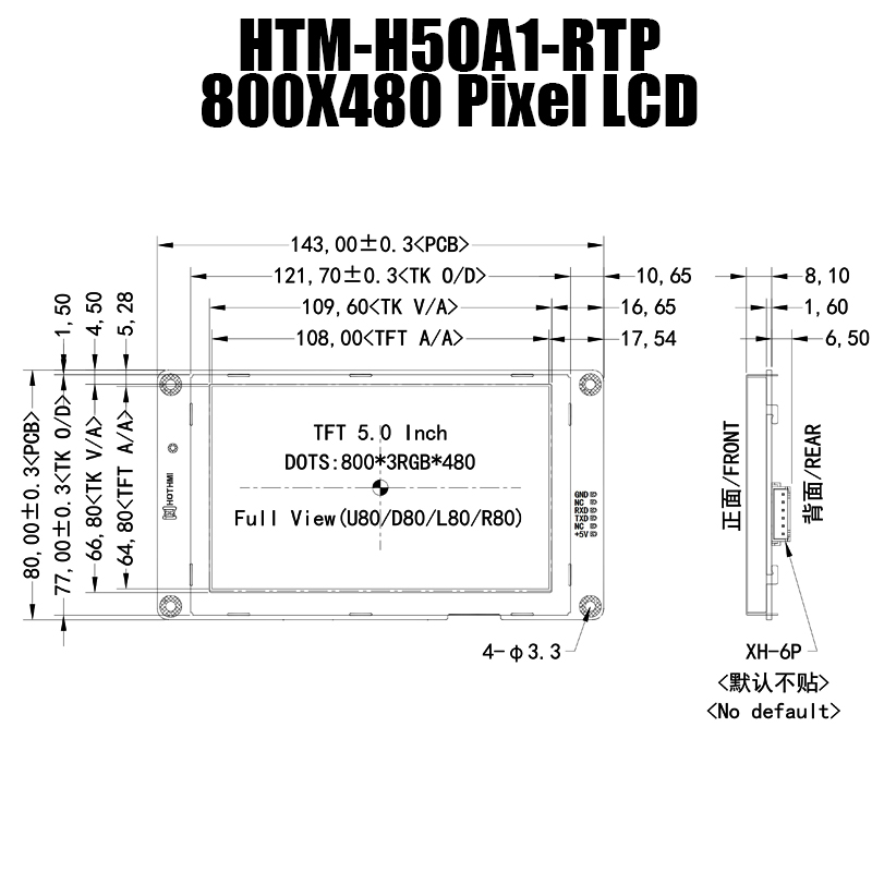 5英寸對角線彩色TFT屏,標配無觸摸/電阻觸摸/電容觸摸
