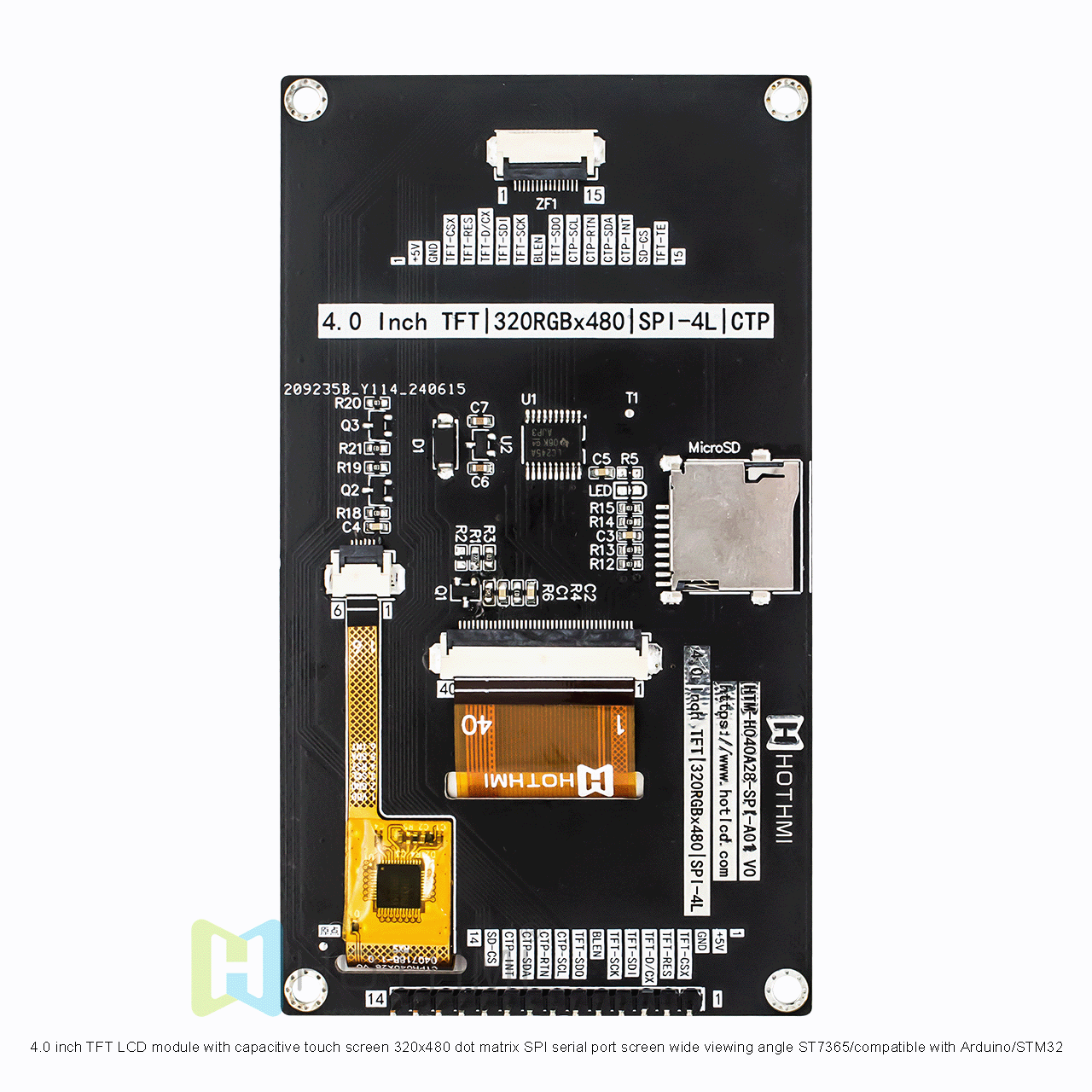 HTM-H040A28-SPI-A01C是一款4.0英寸IPS帶板液晶模組-電容觸摸顯示屏,分辨率為320X480像素。它使用ST7365顯示驅(qū)動(dòng)IC,插入式PIN針,也可以兼容FPC排線,并可與匹配的連接器一起使用。該顯示器中使用的寬視角(U70/D60/L70/R70)技術(shù)提供了全視角和出色的色彩表現(xiàn),使您能夠輕松地從各個(gè)角度觀看而不會(huì)失真。該顯示器具有500:1的高對(duì)比度,能夠顯示深黑色和生動(dòng)的顏色。亮度高達(dá)330cd/m2,它可以在陽光下閱讀。FPC連接(可選連接器),3.3V電壓,支持垂直屏幕顯示。所有材料均符合RoHS環(huán)保標(biāo)準(zhǔn)。該模塊廣泛應(yīng)用于各種儀器、工控機(jī)、智能設(shè)備等。適用于C8051/Arduino/STM32等多種微控制器開發(fā)平臺(tái)。