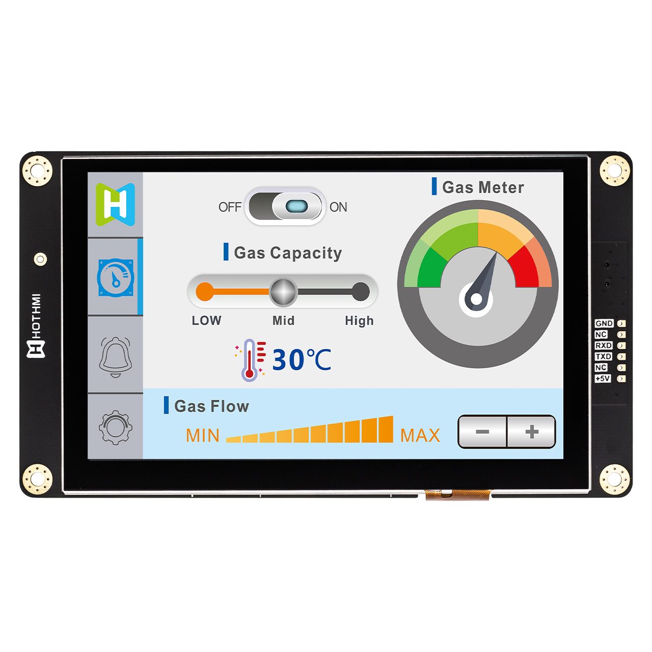 HTM-H050A1-UART-A5C是一款 5.0英寸 IPS TFT 顯示模組,分辨率為 800x480 像素。它是一款帶有智能顯示功能的顯示屏,有UART接口,人機(jī)信息交換功能。除了控制器之外,我們的 HMI 顯示器還集成了 MCU 功能。MCU 通過 UART 接口接收主控制板(客戶端)發(fā)送的命令,然后根據(jù)這些預(yù)定義的指令顯示文本、圖像或動(dòng)畫。主控制板(客戶端)上的 MCU 不需要專門針對(duì)圖像顯示的復(fù)雜編程或執(zhí)行。您可以使用我們的 GUI 設(shè)計(jì)軟件 - UI 編輯器輕松創(chuàng)建文本、圖像或動(dòng)畫。無需編程技能。這款型號(hào)同時(shí)配置了電容式觸摸,多點(diǎn)觸控,順暢無阻。
