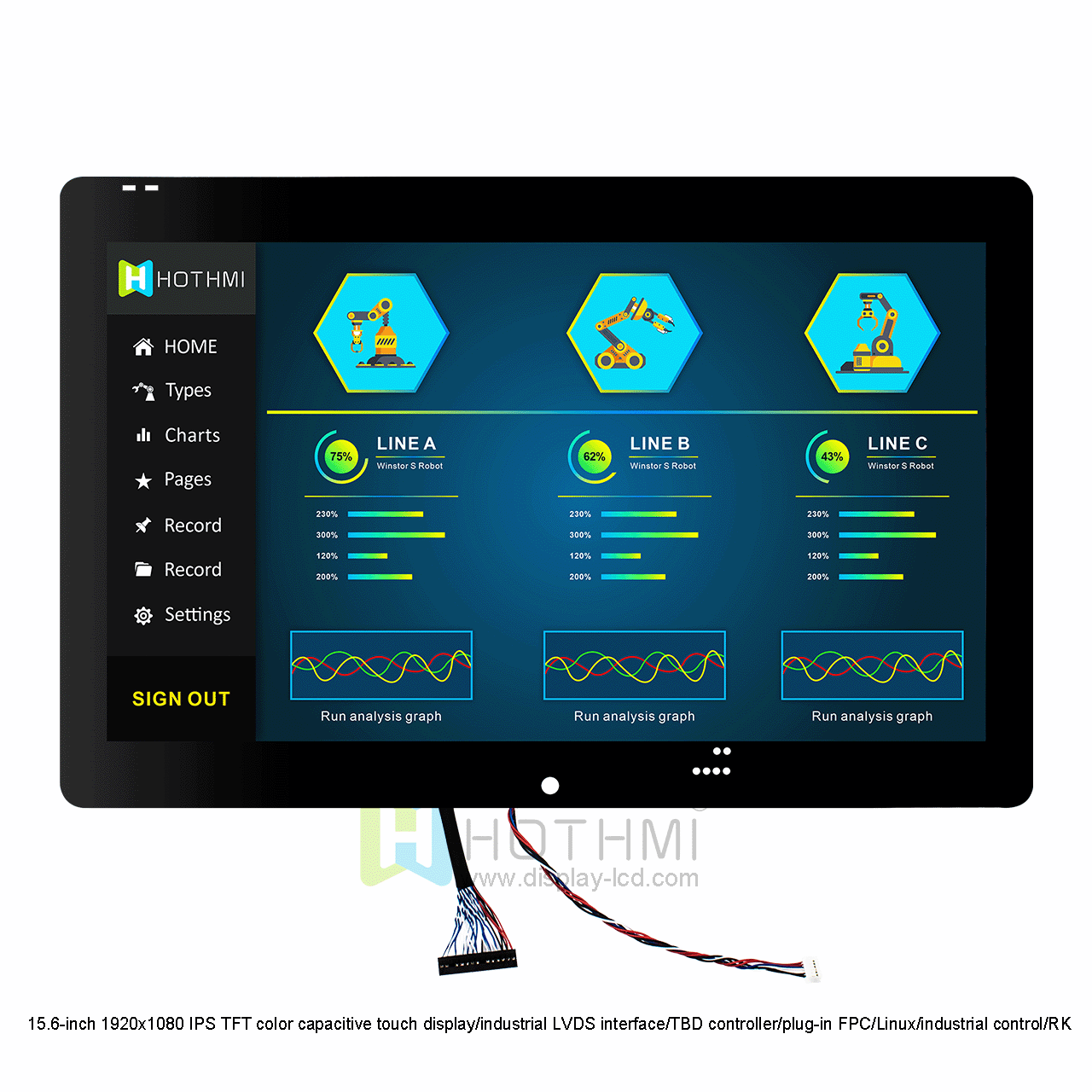 這款標(biāo)準(zhǔn)的 15.6英寸 TFT LCD 顯示屏TFT-H156FHDI8C30-LVDS,分辨率為 1920x1080 像素,IPS全視角,不管從哪個方向觀賞,都有優(yōu)質(zhì)的效果,標(biāo)準(zhǔn)亮度 LED 背光亮度為 850 尼特。雖然這款透射式 LCD 具備觸摸屏,緊湊的尺寸、3.3V 低電壓電源和令人印象深刻的顯示質(zhì)量使其成為需要縱向模式視覺輸出且無觸摸功能的項目的絕佳選擇。