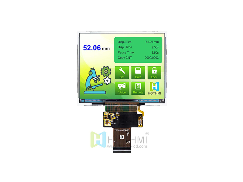 | 3.5 英寸640x480全彩IPS顯示屏/帶玻璃蓋板TFT LCD/插接FPC/ST7703控制器 TFT-H035B20VGIST4G30 | TFT顯示屏 | 640x480 |