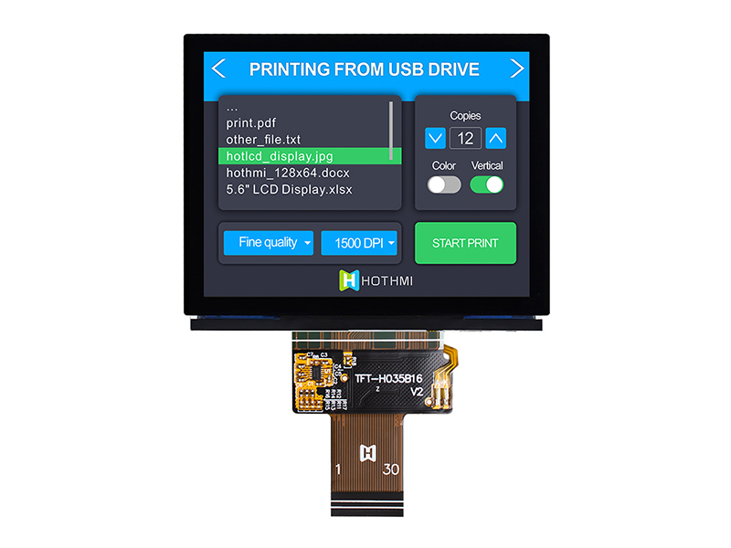 | 3.5寸 320x480 陽(yáng)光下可讀 ST7796 TFT LCD 顯示屏 MCU 用于工業(yè)控制 TFT-H035A12HVISTKN40 | TFT豎屏 | 320x480 |
