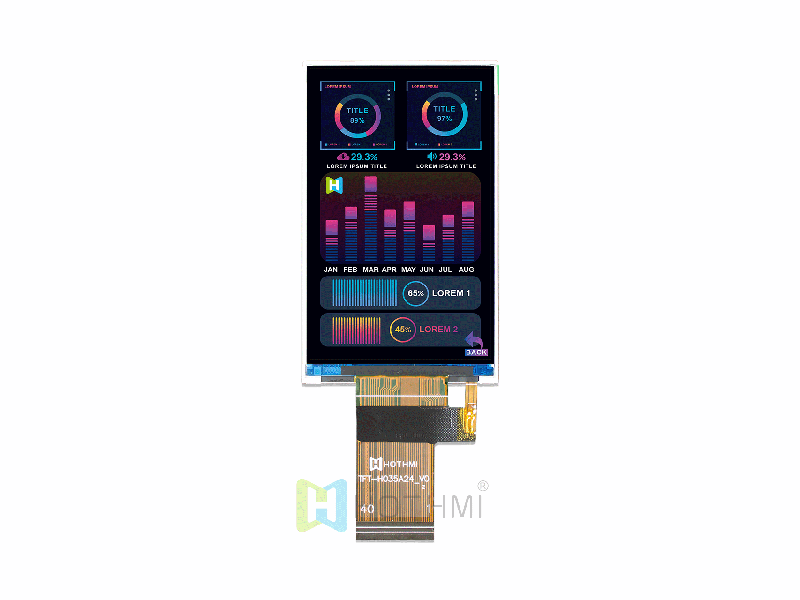 | 3.5寸IPS TFT 液晶模塊顯示/480x800點(diǎn)陣高分辨率/ST7701S/彩屏模組/陽(yáng)光下可讀/TFT-H035A24WVIST8N40 | TFT豎屏 | 480x800 |