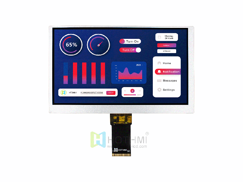 | 8.0英寸標(biāo)準(zhǔn) TFT LCD/1024x600彩色顯示屏/RGB接口/T.B.D控制器/STM32/RK系列 TFT-H080A12WSIHX6N50 | TFT顯示屏 | 1024x600 |