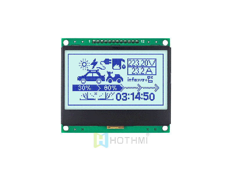 | 3 英寸128x64 圖形 LCD 顯示模塊 | SPI 接口 | 白底灰字 | FSTN 正向 | 半透偏光片 HTM12864-123-31W-A3P | 圖形液晶模組 | 128x64 |
