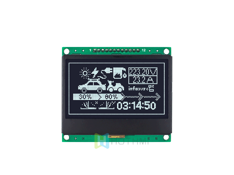 | 3 英寸128x64 圖形LCD顯示模塊 | SPI 接口 | 黑底白字| DFSTN 負片 | Arduino HTM12864-123-41W-A3P | 圖形液晶模組 | 128x64 |